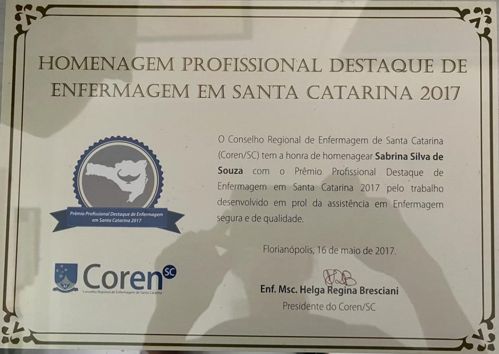 - Enfermeira da Emergência Adulto do Hospital Universitário da UFSC e da Secretaria de Saúde de São José;